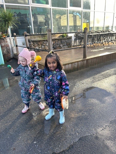 Weather-permitting, engage in a fun-packed outdoor play session overflowing with music, marching, and creative and messy activities related to seasons and topics.